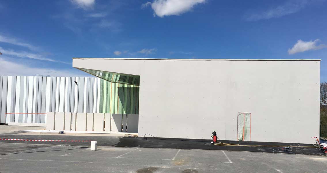 La dispersion purement acrylique Repacryl de MC a été utilisée pour obtenir un aspect attrayant et homogène sur les surfaces en béton. Repacryl, à base de pigments exclusivement minéraux, est stable aux UV, résistant aux intempéries et à la lumière, ce qui en fait la solution idéale pour améliorer les surfaces en béton exposées. Il est disponible en trois teintes de gris qui sont miscibles afin de pouvoir créer n'importe quelle nuance correspondant à celle du béton. Dans le projet d'Épernay, le mélange Repacryl a été appliqué par la technique de pulvérisation, ce qui a permis d’exécuter rapidement les travaux. Résultat : les différences de couleur indésirables du béton apparent ont été éliminées pour laisser une surface esthétiquement attrayante, uniforme et sans défaut. Ainsi, la façade moderne du centre de conservation s'intègre parfaitement dans l'environnement classique de haut niveau créé par les maisons de champagne les plus célèbres de France.