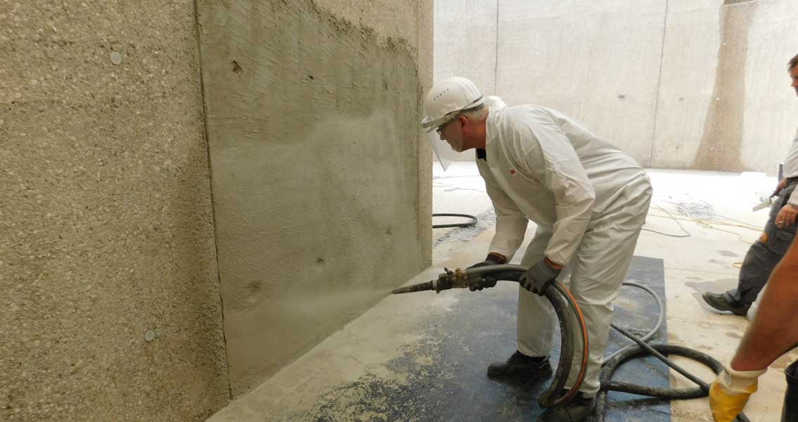 L'exploitant de l'installation, Abwasserverband Achental - Inntal - Zillertal (AIZ), a décidé en 2018 d'étendre la capacité de la station d'épuration mise en service en 1989 de 167000 à 200000 PE. PE signifie "équivalent habitant" et indique le nombre d'habitants vivant dans la zone de captage d'une installation de traitement des eaux usées. Le projet d'extension devait s'accompagner d'une vaste réhabilitation et d'une optimisation de la station d'épuration sur plusieurs années. En juin 2019, les travaux ont commencé sur le premier des quatre bassins biologiques à faible charge d'environ 1 500 m² de surface de paroi et 540 m² de surface de plancher nécessitant une réhabilitation. Le bassin a été entièrement clos pendant toute la durée des travaux de réparation afin d'exclure autant que possible les influences météorologiques et les interruptions de travail dues aux précipitations. En même temps, un défi à court terme s'est présenté : La préparation du support à l'aide d'un jet d'eau à haute pression a révélé que la résistance à la traction du béton existant était inférieure à la normale. Sur les conseils du représentant commercial MC Hubert Schiffbänker, le client AIZ et l'entreprise de revêtement ont mis en œuvre une série de mesures correctives rentables visant à consolider et à protéger durablement le béton, sans impact négatif sur le calendrier du projet.